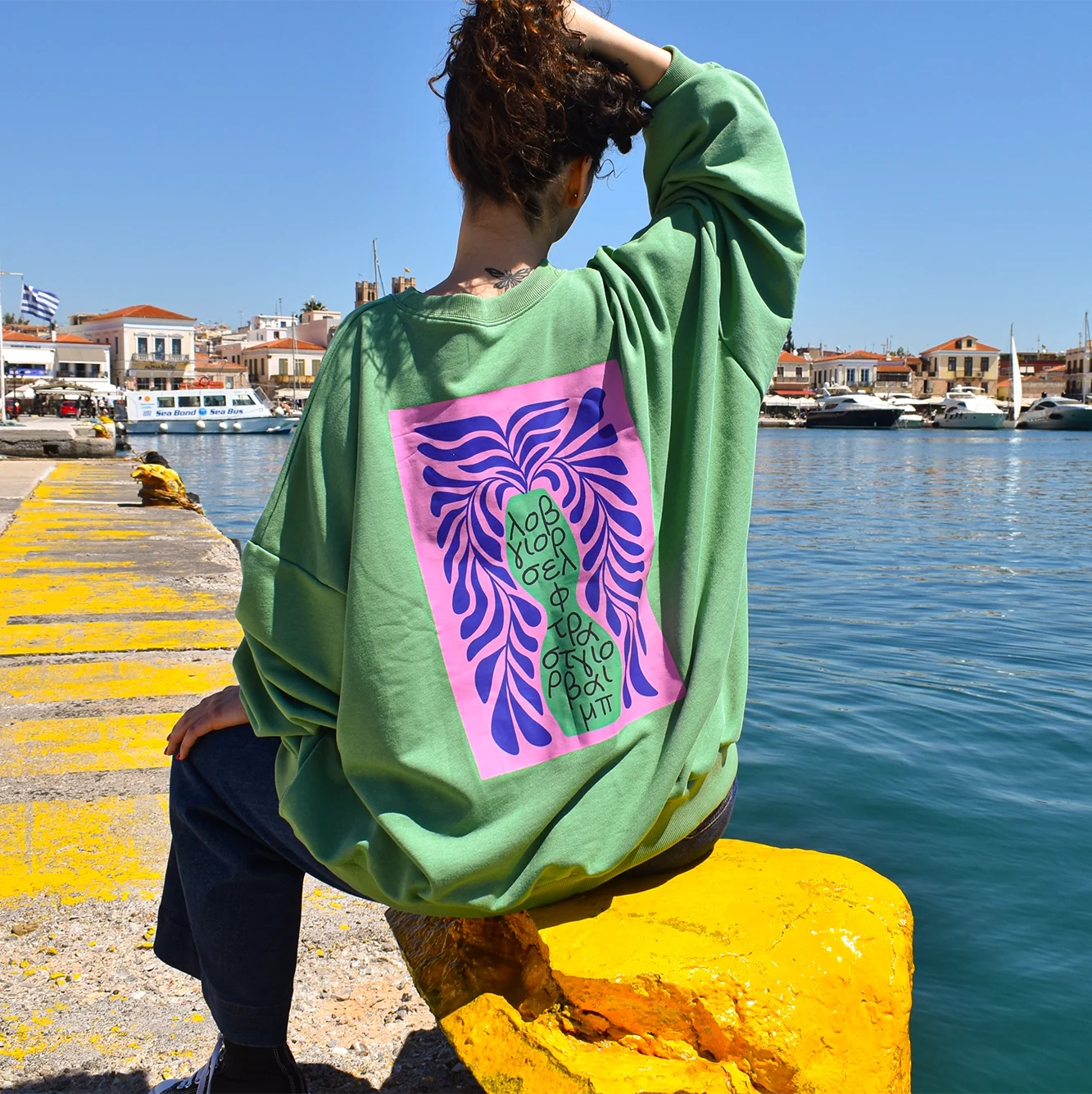 Μπλούζα Φούτερ Βαμβακερή 100%,με μοναδικό χειροποίητο σχέδιο της Εικαστικού Γουλιμή Ξανθή.