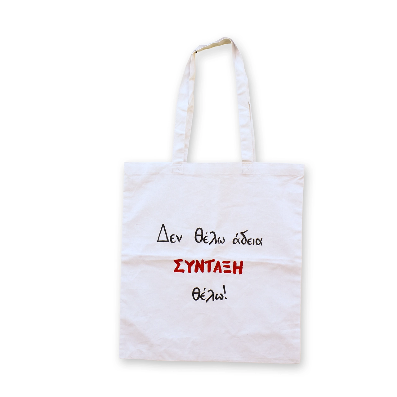 Χειροποίητη Υφασμάτινη Τσάντα “…Σύνταξη Θέλω!”