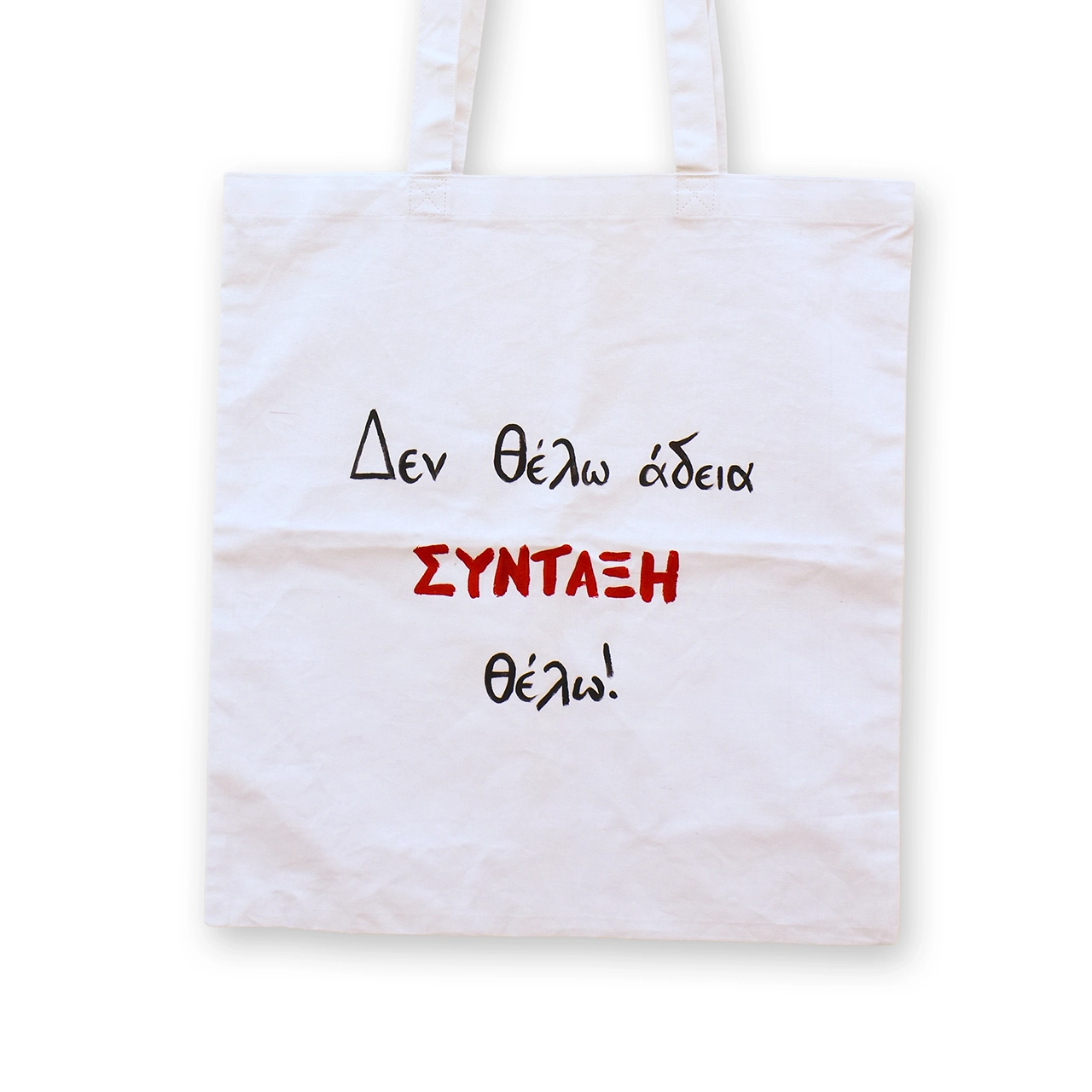 Χειροποίητη Υφασμάτινη Τσάντα “Δεν Θέλω Άδεια , Σύνταξη Θέλω!”