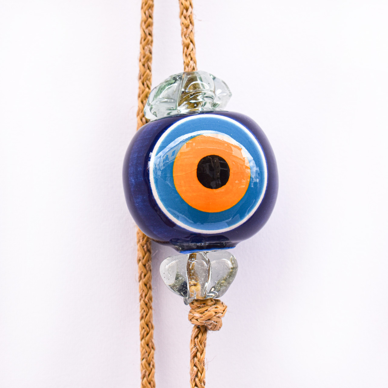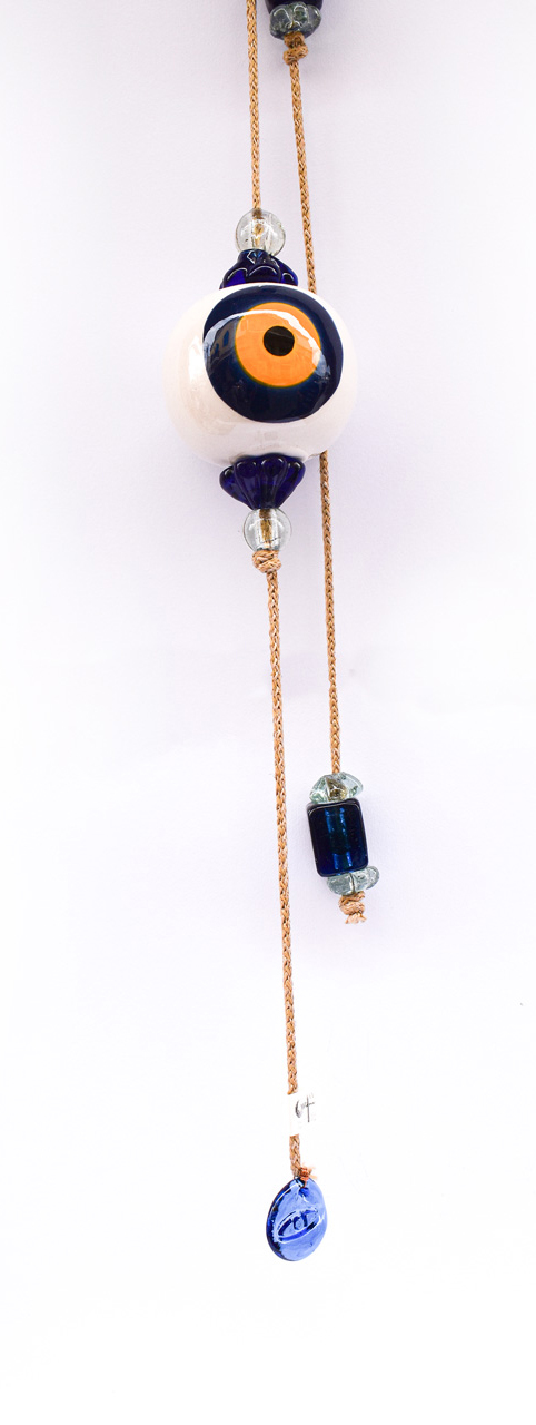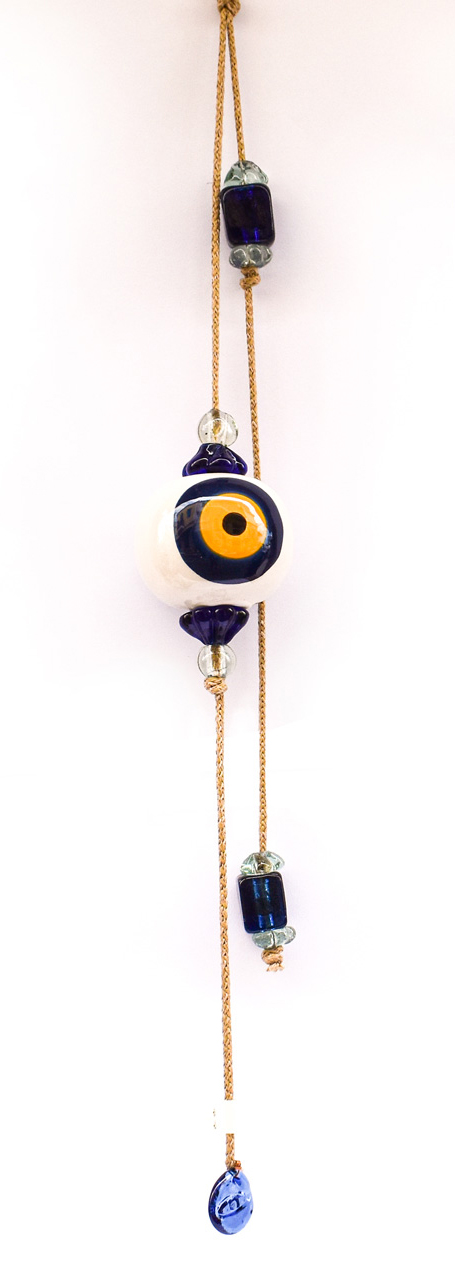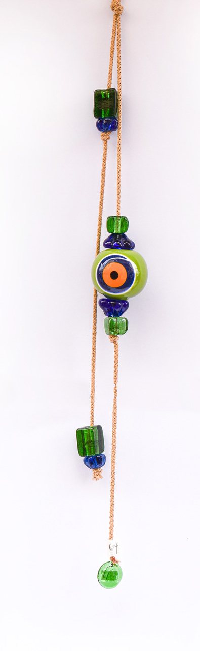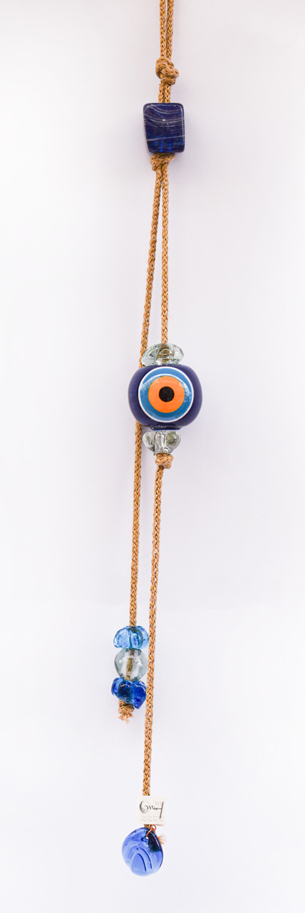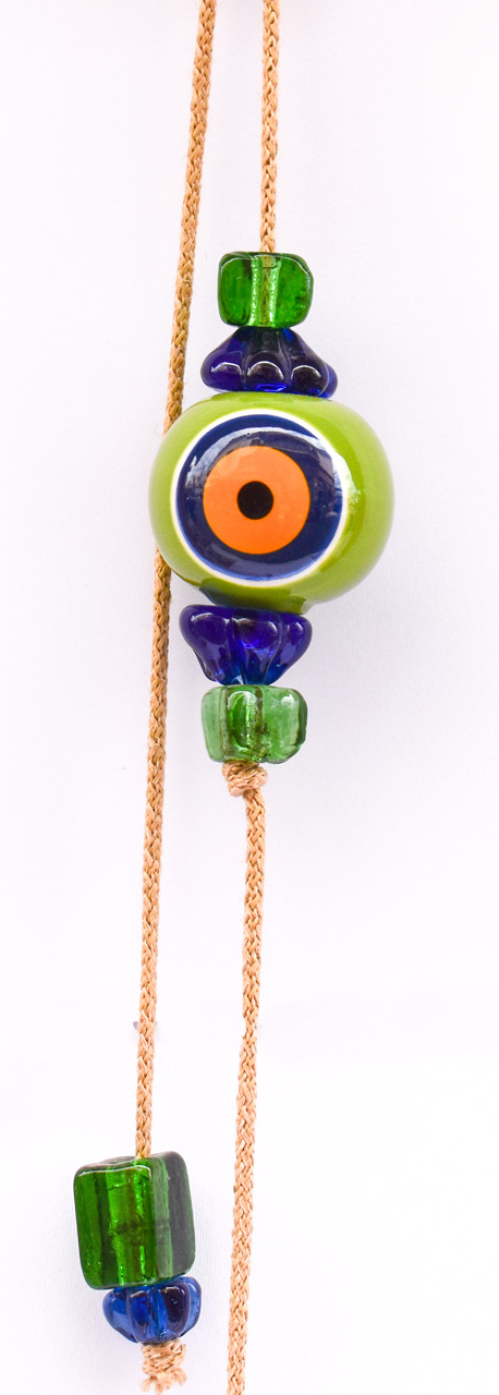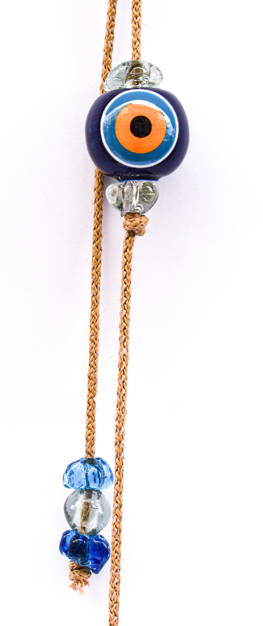Μπεζ Σχοινί με Κεραμικό Μάτι, στο τελείωμα διακοσμητικά γυάλινα στοιχεία.