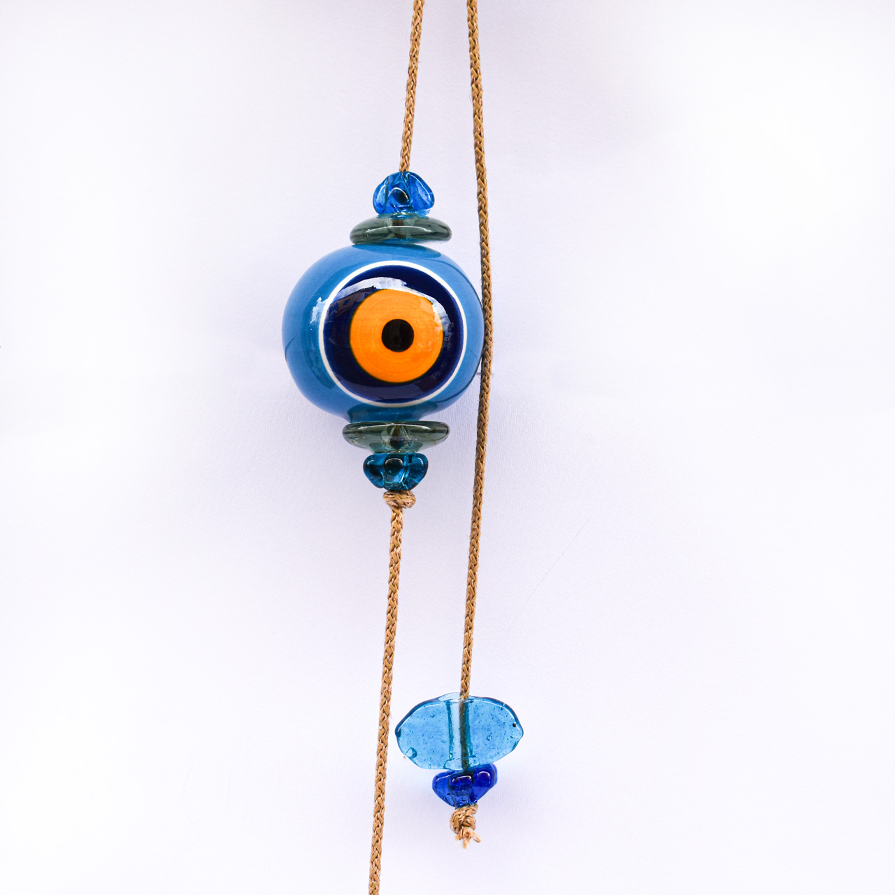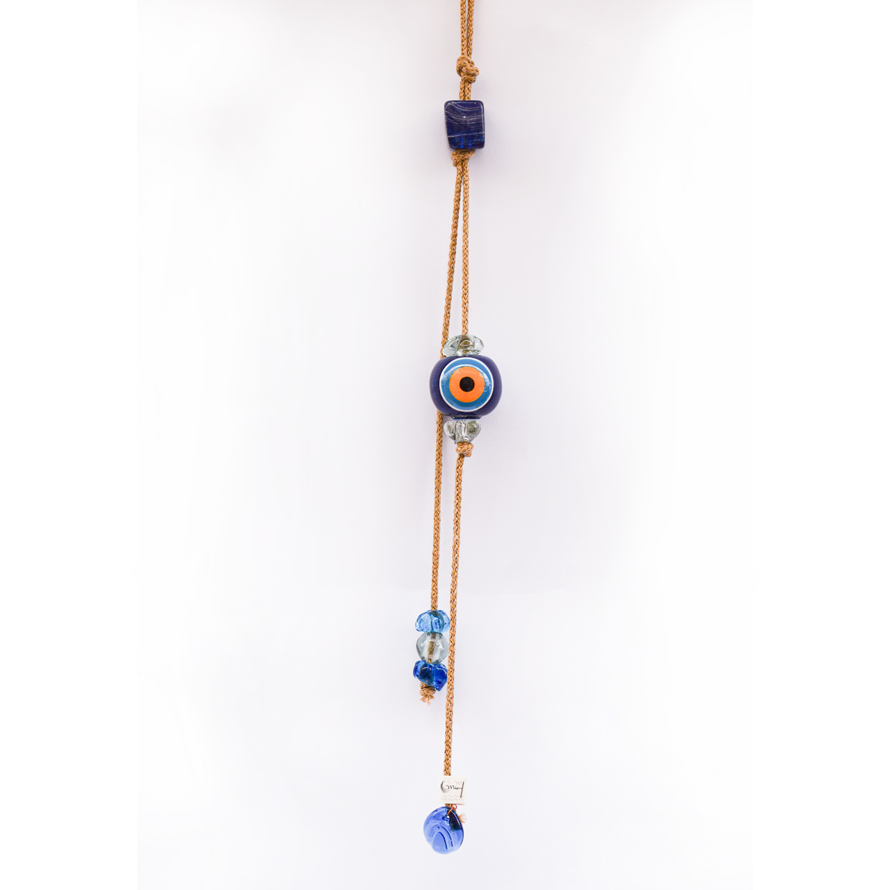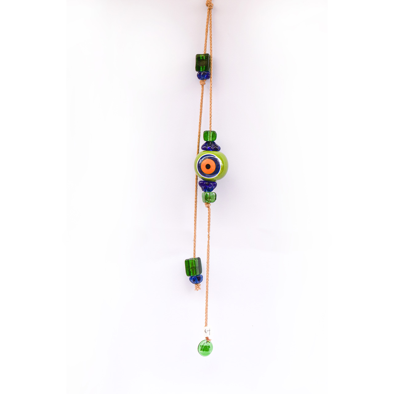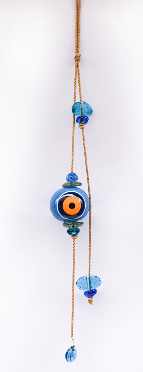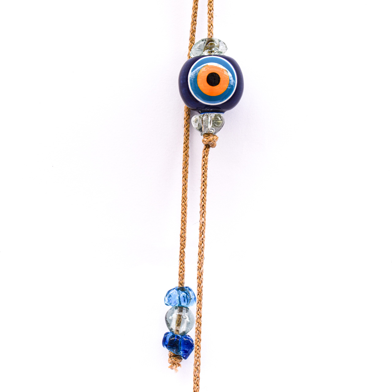 Μπεζ Σχοινί με Κεραμικό Μάτι, στο τελείωμα διακοσμητικά γυάλινα στοιχεία.