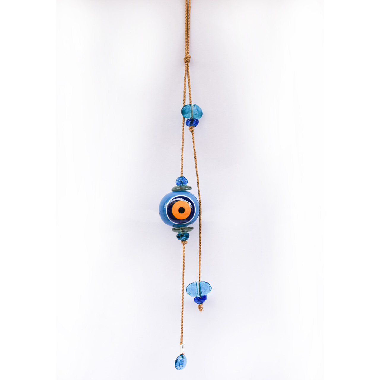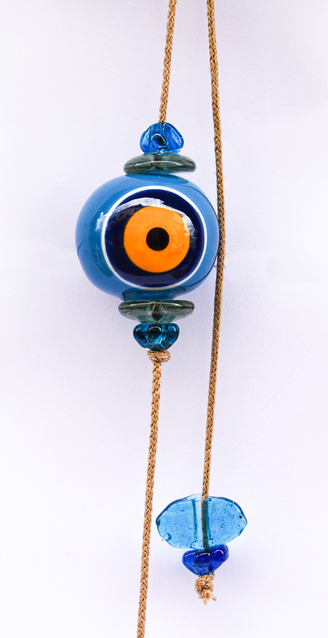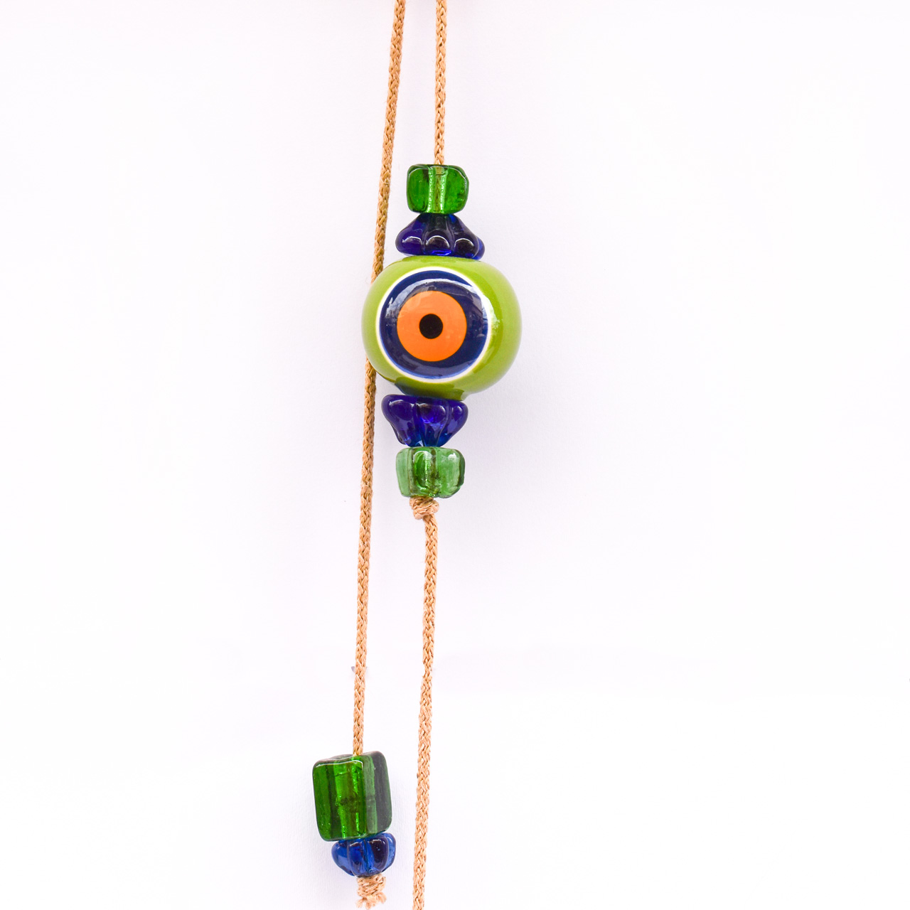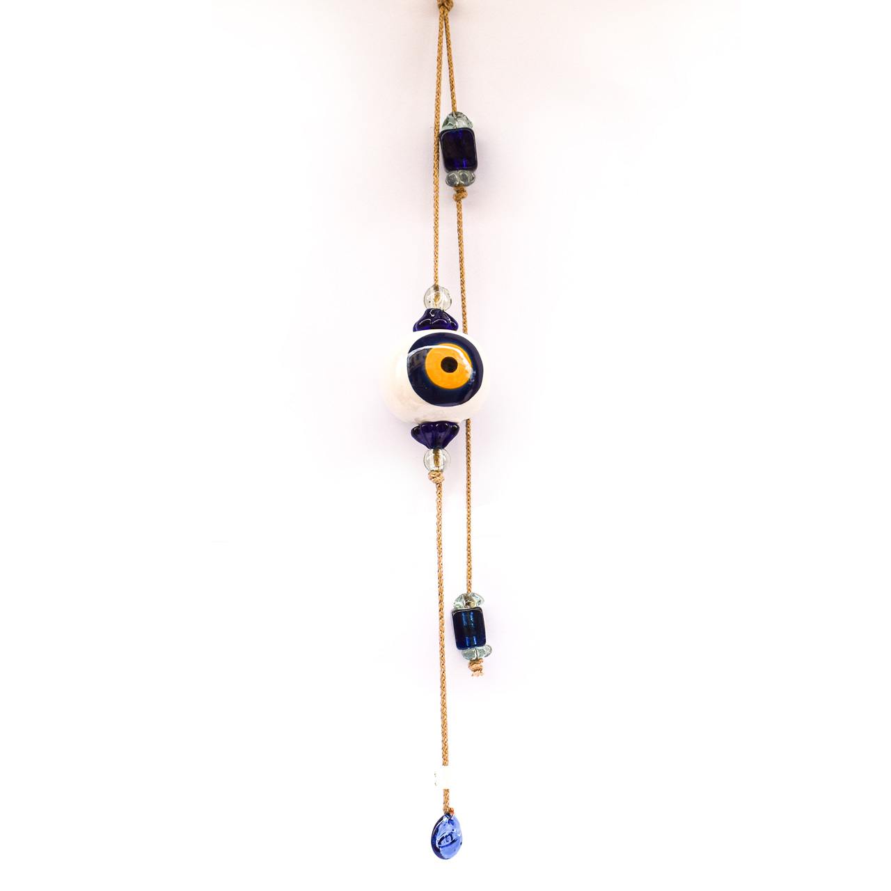 Μπεζ Σχοινί με Κεραμικό Μάτι, στο τελείωμα διακοσμητικά γυάλινα στοιχεία.