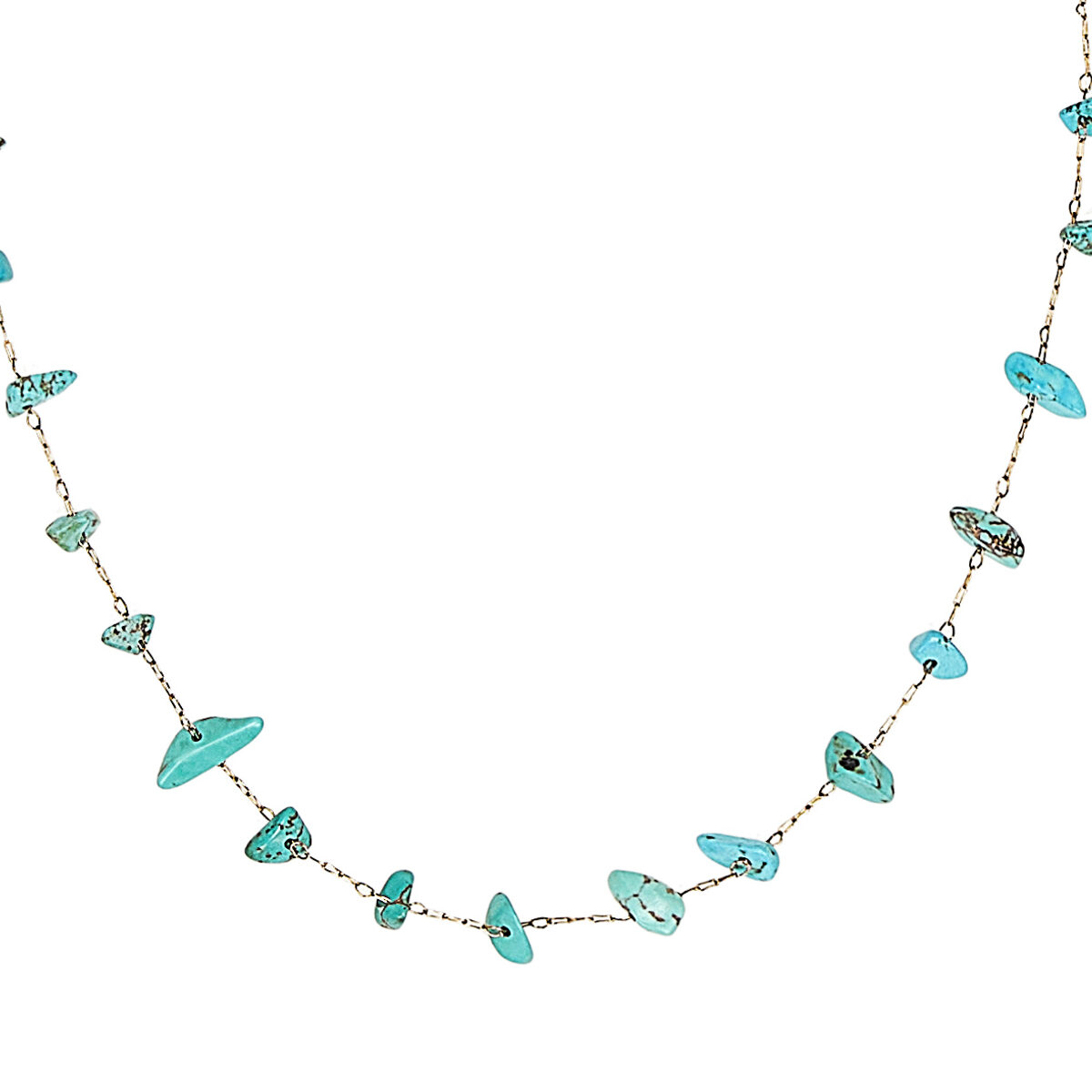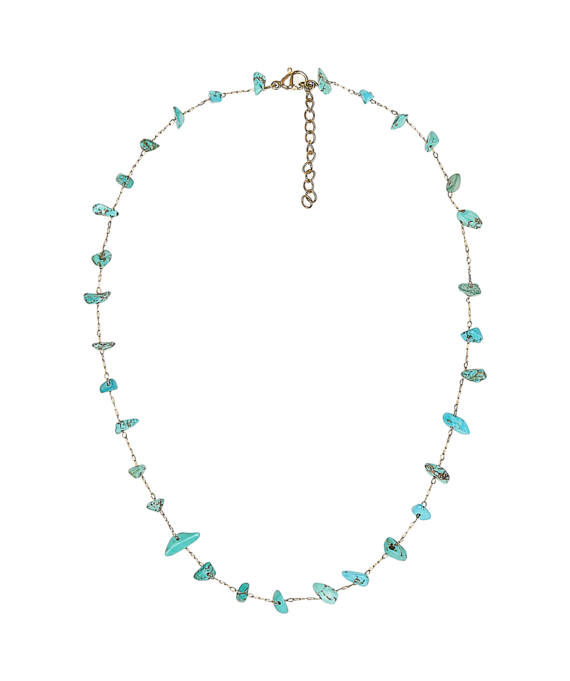 Κολιέ Από Ατσάλι Επιχρυσωμένο Με Ημιπολύτιμές Πέτρες Τιρκoυάζ.