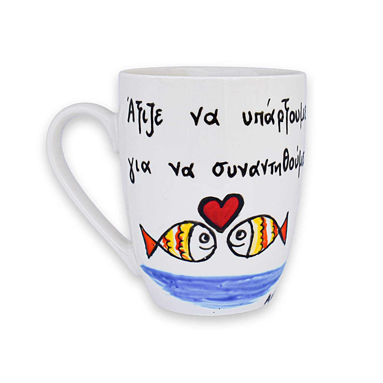 Χειροποίητη κεραμική κούπα ζωγραφισμένη στο χέρι, με μοναδική ατάκα. Ιδανική για δώρο ή καθημερινή χρήση.